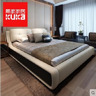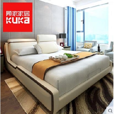 顾家家居简约现代真皮床头层牛皮主卧欧式卧卧室家具双人床
