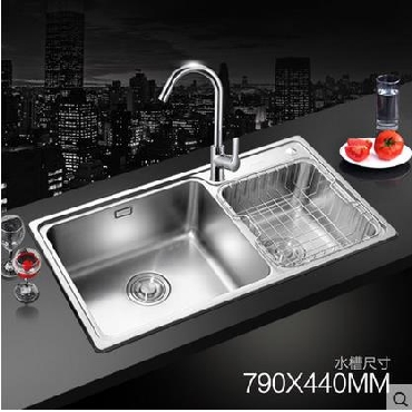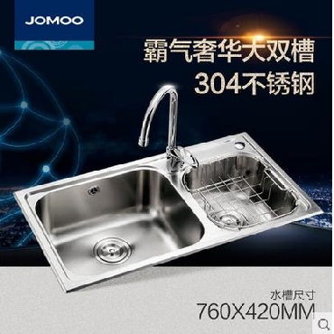 jomoo九牧水槽洗菜盆加厚双槽套餐厨房304不锈钢洗碗池水池06131