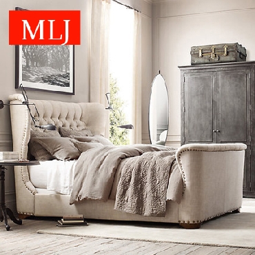 美式欧式双人布艺双人床海盗船造型床软包床卧室家具工厂定制