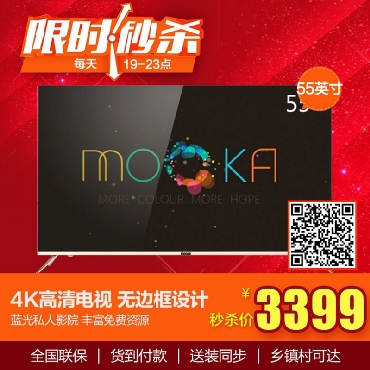 MOOKA模卡 4K电视 U55Q8155英寸曲面电视,4K高清3840*2160分辨率,4000R