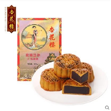 杏花楼 特制玫瑰豆沙月饼礼盒800g 广式月饼纸盒传统糕点上海特产 招牌月饼 特制馅料
