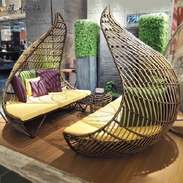 户外凉亭防风PE藤编沙发躺床 设计师别墅阳台酒店工程创意景观亭