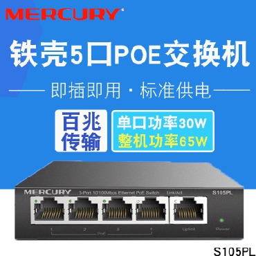 水星S105PL 5口百兆PoE交换机 供电模块大功率钢壳