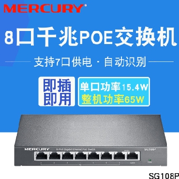 水星 SG108P 8口全千兆钢壳PoE交换机AP摄像头PoE供电模块