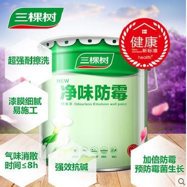 • 三棵树内墙乳胶漆 健康+净味防霉墙面漆 白色墙漆 油漆涂料20KG