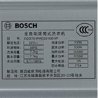 Bosch博世XQG70-WAE201681W时尚7公斤全自动滚筒洗衣机快洗 15分钟快洗 专业除