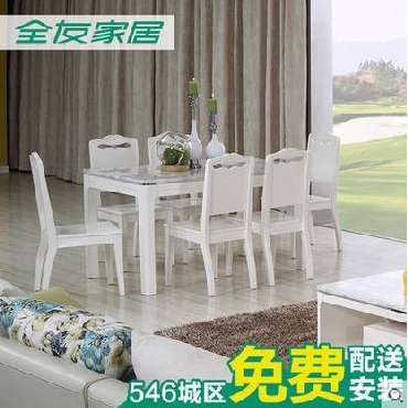 全友家私时尚现代客餐厅家具天然石餐桌椅f方形饭桌组合120329