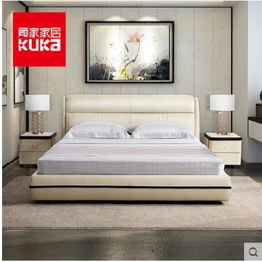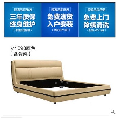 顾家家居真皮床1.8米双人主卧皮艺现代简约卧室家具经济型皮床