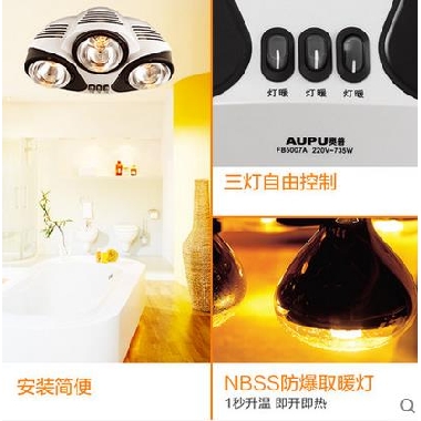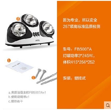 奥普浴霸 壁挂式浴霸 卫生间浴霸 灯暖取暖 防水防爆灯泡 5007A