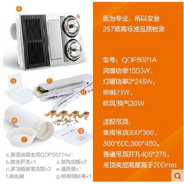 • 奥普浴霸 双风暖 小浴室套餐 超薄超导 风暖浴霸 LED厨卫灯