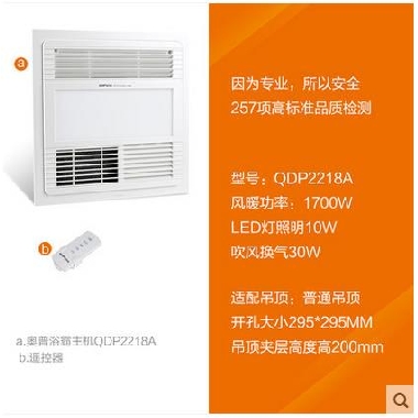 奥普浴霸 风暖照明换气 适配普通吊顶 浴霸2218A遥控控制 普通吊顶适配 LED照明