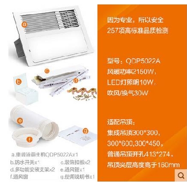 • 奥普浴霸 风暖浴霸LED平板灯吹风扇 两卫一厨套餐