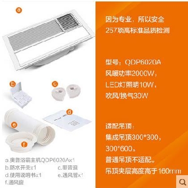 奥普浴霸 双风暖 小浴室套餐 超薄超导 风暖浴霸 LED厨卫灯