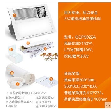 奥普浴霸 风暖浴霸LED平板灯吹风扇 一卫一厨套餐