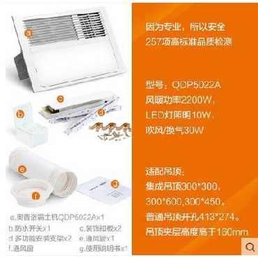 奥普浴霸 风暖浴霸LED平板灯吹风扇 两卫一厨套餐