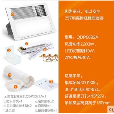 • 奥普浴霸 风暖浴霸LED平板灯吹风扇 两卫一厨套餐