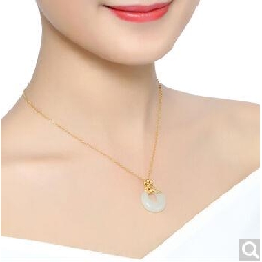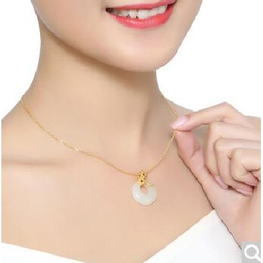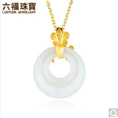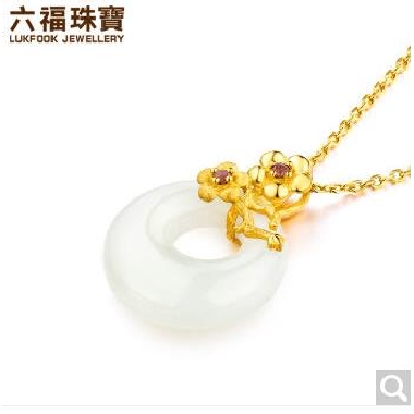• 六福珠宝 足金和田玉梅花金镶玉黄金吊坠 定价 HOA1N70001 总重5.41克