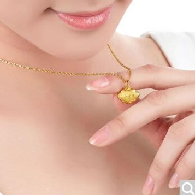 六福珠宝 足金长命锁富贵锁黃金吊坠 计价 B01TBGP0004 1.98克(含工费80元)