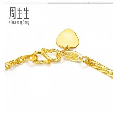• 周生生足金黄金手链硬金女Charme串珠心型转运珠吊坠81322P