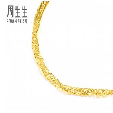 周生生足金黄金手链女款侧身波浪水波纹黄金首饰品09240B计价