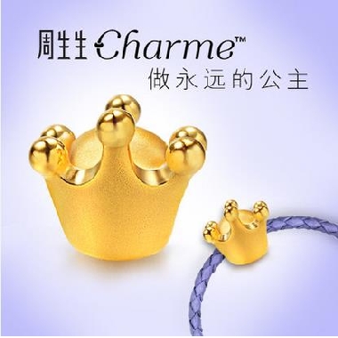 周生生足金charme黄金手链转运珠皇冠硬金项链吊坠女 83631P定价