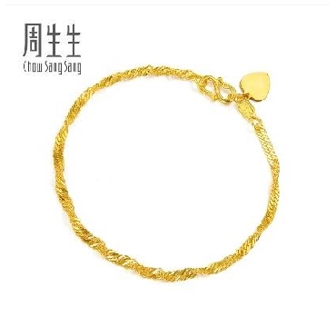 周生生足金黄金手链女款侧身波浪水波纹黄金首饰品09240B计价