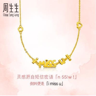 周生生黄金足金'i miss u爱情密语项链套链女款84310n计价