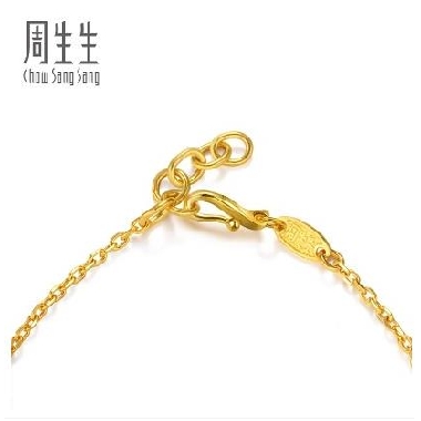 • 周生生足金黄金手链硬金女Charme串珠心型转运珠吊坠81322P