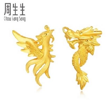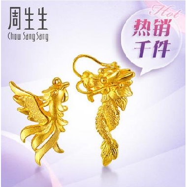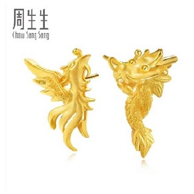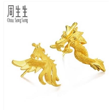 周生生足金龙凤结婚 黄金耳钉 耳环 耳饰 耳坠女68742E计价