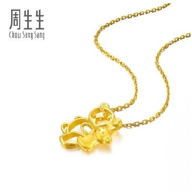 周生生黄金足金母子熊吊坠黄金项坠女款 19588P计价