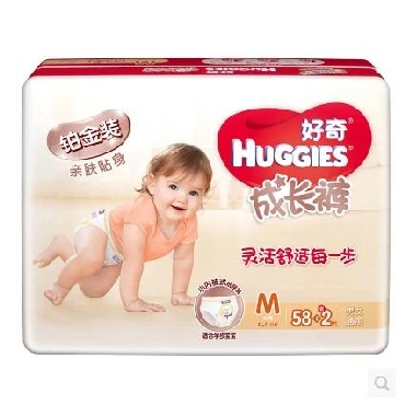 好奇铂金装婴儿学步成长裤M58+2片2包 拉拉裤 男女通用 亲肤贴身 蓬松触感 弹性腰围 不留红印