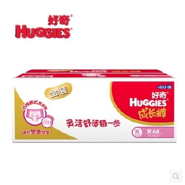 好奇金装拉拉裤学步成长裤女宝加大号XL64片箱装
