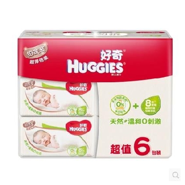 好奇超厚倍柔婴儿湿巾80抽x6便携装手口可用