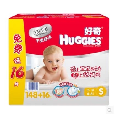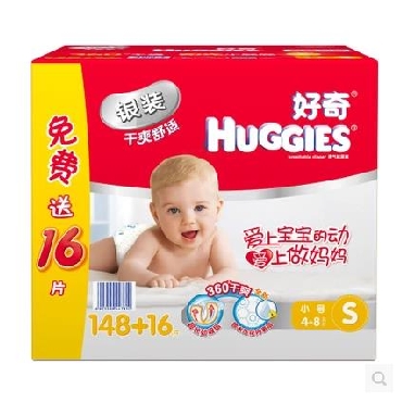 好奇银装干爽舒适婴儿纸尿裤小号S148+16尿不湿