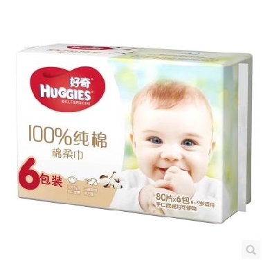好奇纯棉婴儿棉柔巾干湿两用巾80片6包2