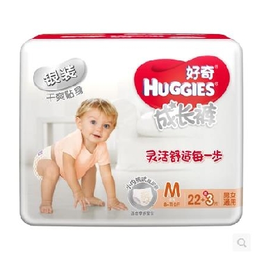 好奇银装干爽贴身婴儿成长裤中号M22+3片学步裤 新品男女通用