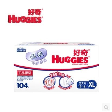 好奇银装干爽舒适婴儿纸尿裤加大号XL104片尿不湿