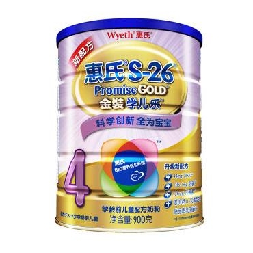 惠氏(Wyeth)S-26金装学儿乐学龄前儿童配方奶粉 4段 900克(罐装)