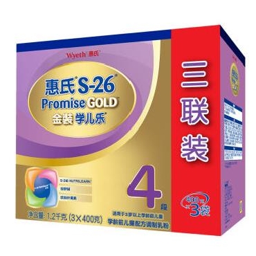 惠氏(Wyeth)S-26旗舰版金装学儿乐学龄前儿童配方奶粉 4段 1200克(400克3袋)