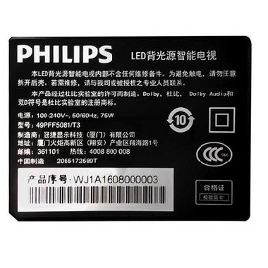 Philips飞利浦 49PFF5081T3 49英寸液晶电视安卓云智能平板50