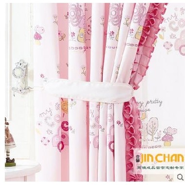 金蝉 儿童房甜美公主女孩 卧室成品粉红色卡通 遮光定制窗帘窗纱