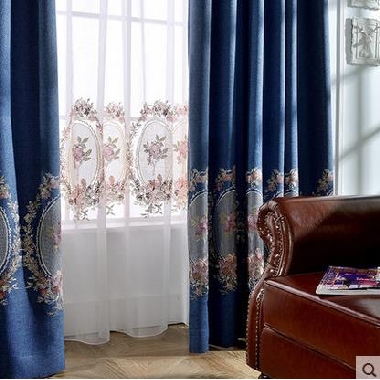 • 金蝉 田园定制窗帘成品 棉麻绣花遮光卧室客厅飘窗帘布 简约现代