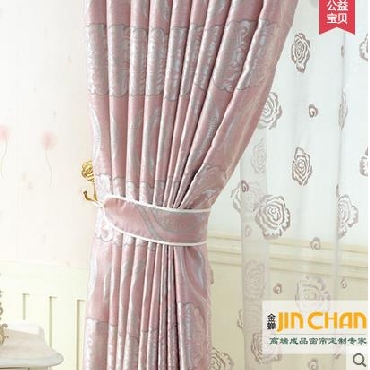 金蝉 窗帘 全遮光 加厚欧式高档提花 遮光布 粉紫卧室客厅窗帘
