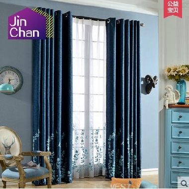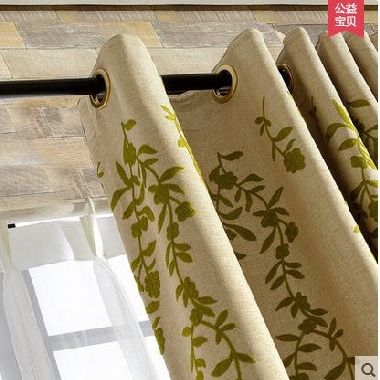 • 金蝉 田园定制窗帘成品 棉麻绣花遮光卧室客厅飘窗帘布 简约现代