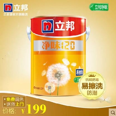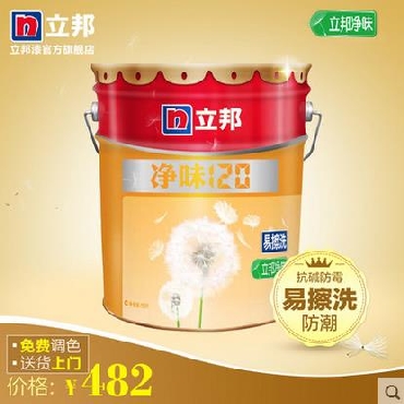 • 立邦漆 净味120防潮易擦洗内墙墙面漆白色乳胶面漆油漆涂料5L 15L