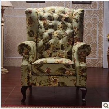 老虎椅沙发椅 美式布艺沙发 欧式单人位 地中海田园沙发高背椅