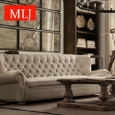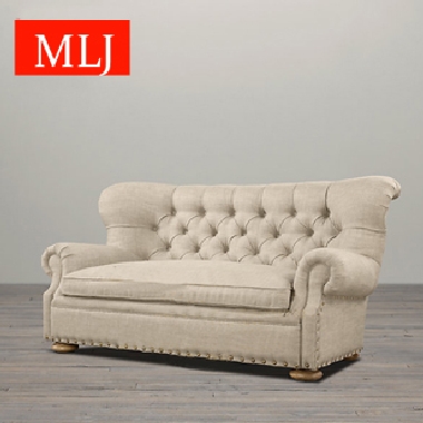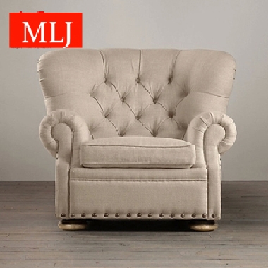 美式乡村单人二人三人布艺沙发沙发组合欧式古典拉扣麻布沙发