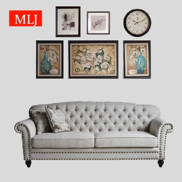 美式乡村三人二人布艺沙发拉扣沙发棉麻布沙发客厅家具沙发组合
