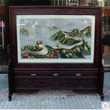 娇古 苏绣双面绣屏风 风景山水背景隔断客厅卧室酒店玄关装饰