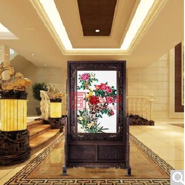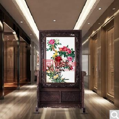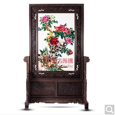 娇古 苏绣成品 手工苏州刺绣双面绣成品客厅玄关苏绣屏风富贵平安